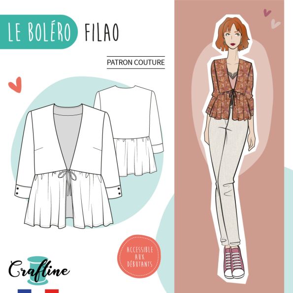 Aujourd’hui, nous allons vous expliquer comment modifier un de nos patrons : le boléro Filao, afin de le transformer en une jolie petite blouse tendance que l’on voit partout en ce printemps !